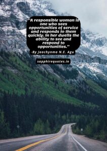 33) ”A responsible woman is one who sees opportunities of service and responds to them quickly. In her dwells the ability to see and respond to opportunities.”