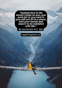39) ”Satisfaction in life doesn’t jump on you, you work for it, you earn it. You will not sit in a place, fold your hands and expect to be satisfied with life.”