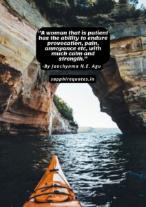 42) ”A woman that is patient has the ability to endure provocation, pain, annoyance etc, with much calm and strength.”