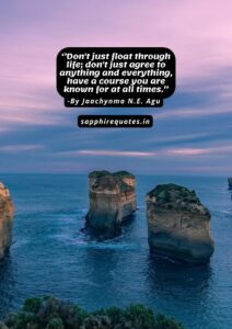 09) ”Don’t just float through life; don’t just agree to anything and everything, have a course you are known for at all times.”