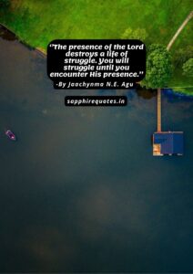 69) ”The presence of the Lord destroys a life of struggle. You will struggle until you encounter His presence.”