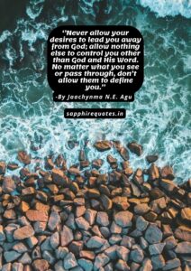 11) ”Never allow your desires to lead you away from God; allow nothing else to control you other than God and His Word. No matter what you see or pass through, don’t allow them to define you.”