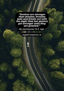 133) ”Desires are stronger than dreams. Dreams fade and frizzle out with the night time but desires get stronger until they are granted.”