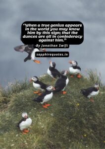 15) ”When a true genius appears in the world you may know him by this sign; that the dunces are all in confederacy against him.”