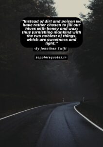 20) ”Instead of dirt and poison we have rather chosen to fill our hives with honey and wax; thus furnishing mankind with the two noblest of things, which are sweetness and light.”