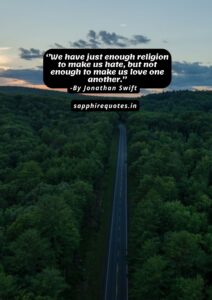 12) ”We have just enough religion to make us hate, but not enough to make us love one another.”