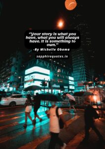 25) ”ven when it’s not pretty or perfect, Even when it’s more real than you want it to be. Your story is what you have, what you will always have. It is something to own.”