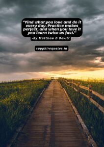 12) ”Find what you love and do it every day. Practice makes perfect, and when you love it you learn twice as fast.”