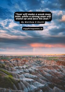 13) ”Fear will make a weak man hide, while a strong man will stand up and face his fear.”