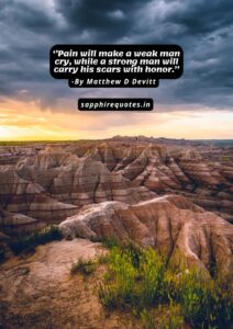 14) ”Pain will make a weak man cry, while a strong man will carry his scars with honor.”