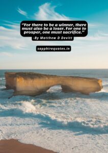 23) ”For there to be a winner, there must also be a loser. For one to prosper, one must sacrifice.”