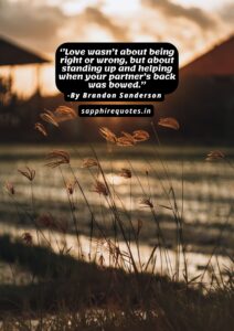 35) ”Love wasn’t about being right or wrong, but about standing up and helping when your partner’s back was bowed.”