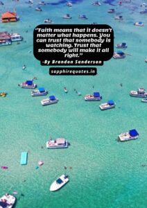 22) ”Faith means that it doesn’t matter what happens. You can trust that somebody is watching. Trust that somebody will make it all right.”