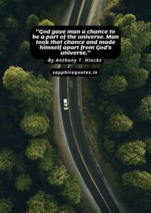 20)  ”God gave man a chance to be a part of the universe. Man took that chance and made himself apart from God’s universe.”