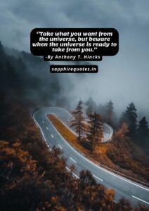 08)  ”Take what you want from the universe, but beware when the universe is ready to take from you.”