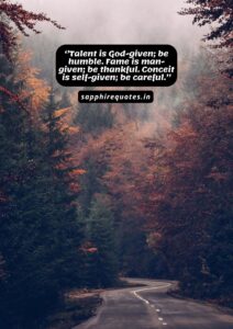 81) ”Talent is God-given; be humble. Fame is man-given; be thankful. Conceit is self-given; be careful.”