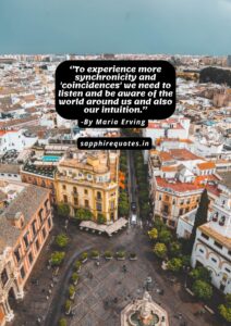 16) ”To experience more synchronicity and ‘coincidences’ we need to listen and be aware of the world around us and also our intuition.”