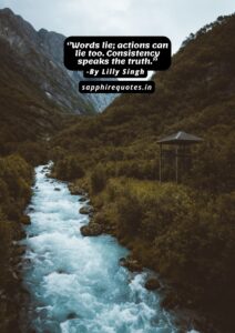 34) ”Words lie; actions can lie too. Consistency speaks the truth.”