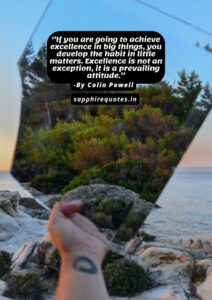 27) ”If you are going to achieve excellence in big things, you develop the habit in little matters. Excellence is not an exception, it is a prevailing attitude.” -Colin Powell