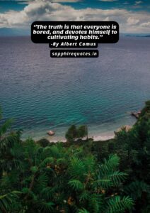15) ”The truth is that everyone is bored, and devotes himself to cultivating habits.” -Albert Camus