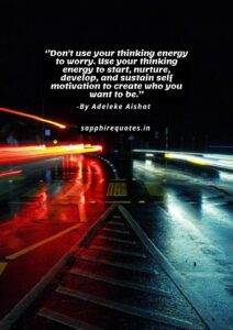 12) ”Don’t use your thinking energy to worry. Use your thinking energy to start, nurture, develop, and sustain self motivation to create who you want to be.”