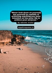 14) ”Never look down on yourself; see yourself as capable of achieving anything you have intention of. Live your life to achieve your purpose.”