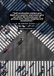 17) ”Self motivation makes you fight as a warrior and never give up when life knocks you to ground zero. Have undying self motivation.”