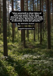 20) ”Give yourself a clear idea of who you want to be, then develop the traits that will help you get there. Motivate yourself to develop traits for growth.”