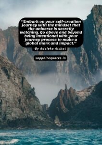 31) ”Embark on your self-creation journey with the mindset that the universe is secretly watching. Go above and beyond being intentional with your journey process to make a global mark and impact.”