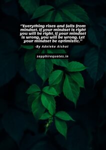 32) ”Everything rises and falls from mindset. If your mindset is right you will be right. If your mindset is wrong, you will be wrong. Let your mindset be optimistic.”