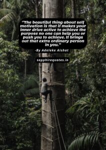 40) ”The beautiful thing about self motivation is that it makes your inner drive active to achieve the purpose no one can help you or push you to achieve. It brings out that extra ordinary person in you.”