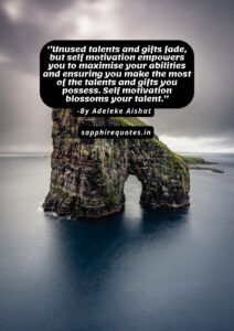 09) ”Unused talents and gifts fade, but self motivation empowers you to maximise your abilities and ensuring you make the most of the talents and gifts you possess. Self motivation blossoms your talent.”
