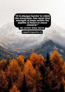 39) ”It is always harder to climb the mountain. One must find strength of hope within the depths of heart to move onward.” –