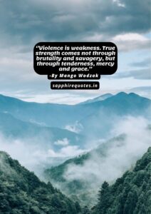 49) ”Violence is weakness. True strength comes not through brutality and savagery, but through tenderness, mercy and grace.” –