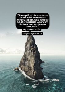 28) ”Strength of character is never with those who blindly follow. You need to be able to make your own choices and walk your own path.” -Celeste Lim