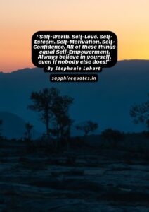 16) ”Self-Worth. Self-Love. Self-Esteem. Self-Motivation. Self-Confidence. All of these things equal Self-Empowerment. Always believe in yourself, even if nobody else does!”