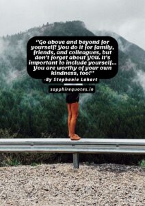 32) ”Go above and beyond for yourself! You do it for family, friends, and colleagues, but don’t forget about YOU. It’s important to include yourself… You are worthy of your own kindness, too!”