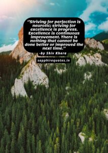 44) ”Striving for perfection is neurotic; striving for excellence is progress. Excellence is continuous improvement. There is nothing that cannot be done better or improved the next time.”