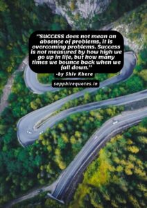 04) ”SUCCESS does not mean an absence of problems, it is overcoming problems. Success is not measured by how high we go up in life, but how many times we bounce back when we fall down.”
