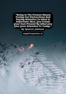 25) ”Being In The Present Means Tuning Out Distractions And Paying Attention To What Is Important, Now. You Create Your Own Present By What You Give Your Attention To Today.”