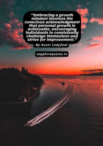 70) ”Embracing a growth mindset involves the conscious acknowledgment that personal growth is achievable, encouraging individuals to consistently challenge themselves and strive for improvement.”