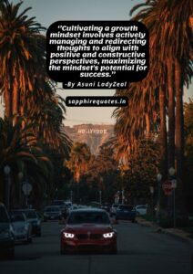 68) ”Cultivating a growth mindset involves actively managing and redirecting thoughts to align with positive and constructive perspectives, maximizing the mindset’s potential for success.”