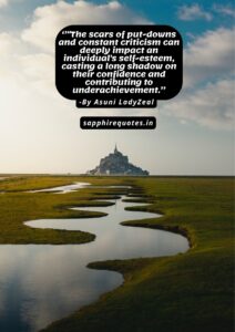 25) ”The scars of put-downs and constant criticism can deeply impact an individual’s self-esteem, casting a long shadow on their confidence and contributing to underachievement.”