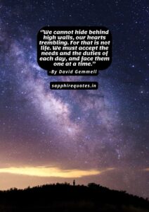 28) ”We cannot hide behind high walls, our hearts trembling. For that is not life. We must accept the needs and the duties of each day, and face them one at a time.”