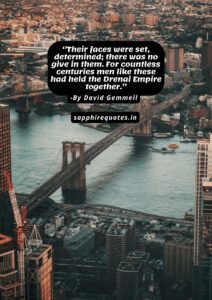 40) ”Their faces were set, determined; there was no give in them. For countless centuries men like these had held the Drenai Empire together.”