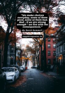 08) ”We make choices everyday, some of them good, some of them bad. And – if we are strong enough – we live with the consequences.”