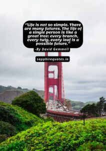 18) ”Life is not so simple. There are many futures. The life of a single person is like a great tree: every branch, every twig, every leaf is a possible future.”