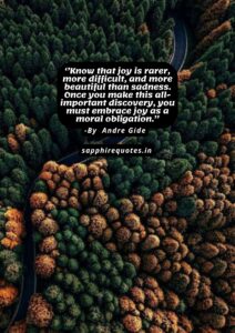 08)  ”Know that joy is rarer, more difficult, and more beautiful than sadness. Once you make this all-important discovery, you must embrace joy as a moral obligation.”