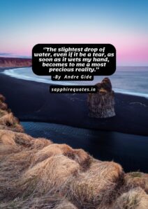 89)  ”The slightest drop of water, even if it be a tear, as soon as it wets my hand, becomes to me a most precious reality.”