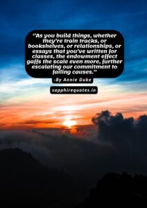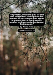 23) ”In general, when we quit, we fear two things: that we’ve failed and that we’ve wasted our time, effort, or money. Waste is a forward-looking problem, not a backward-looking one.”